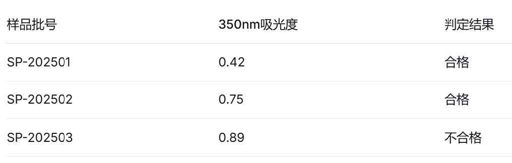 判定标准: 在350nm波长处的吸光度 不得过0.8。