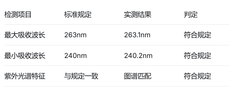 - 检测项目:紫外吸收特性鉴别